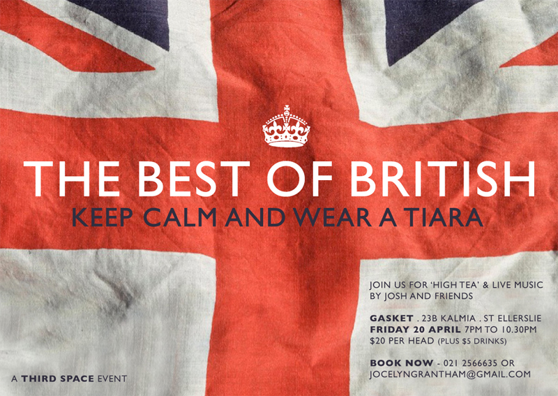 About 70 people gathered at Gasket Kitchen on 20 April 2012 to celebrate a British Night. A wonderful Band including Josh Jones, Gray Paterson, Andy Speir, provided music for dancing and singing and there was a guest appearance from The Queen!