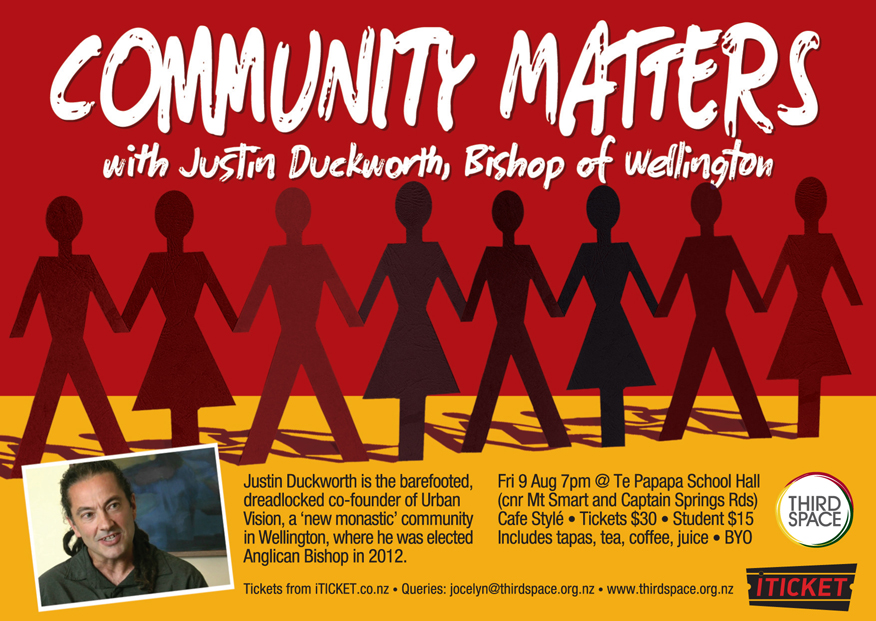 Justin Duckworth, Bishop of Wellington, spoke to a group of 180 people on Friday 9 August 2013, at Te Papapa School Hall, in Auckland. His message was inspiring and direct, challenging us to take the words of Jesus seriously to be “good neighbours” and to take care of all people especially those on the margins.