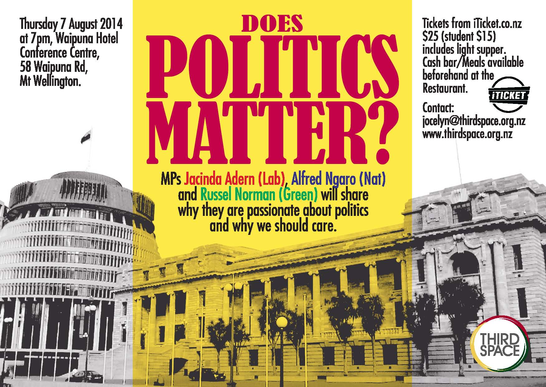 POLITICS MATTER: On Thur 7 Aug 2014 @ Waipuna Hotel Conference Centre 7pm
